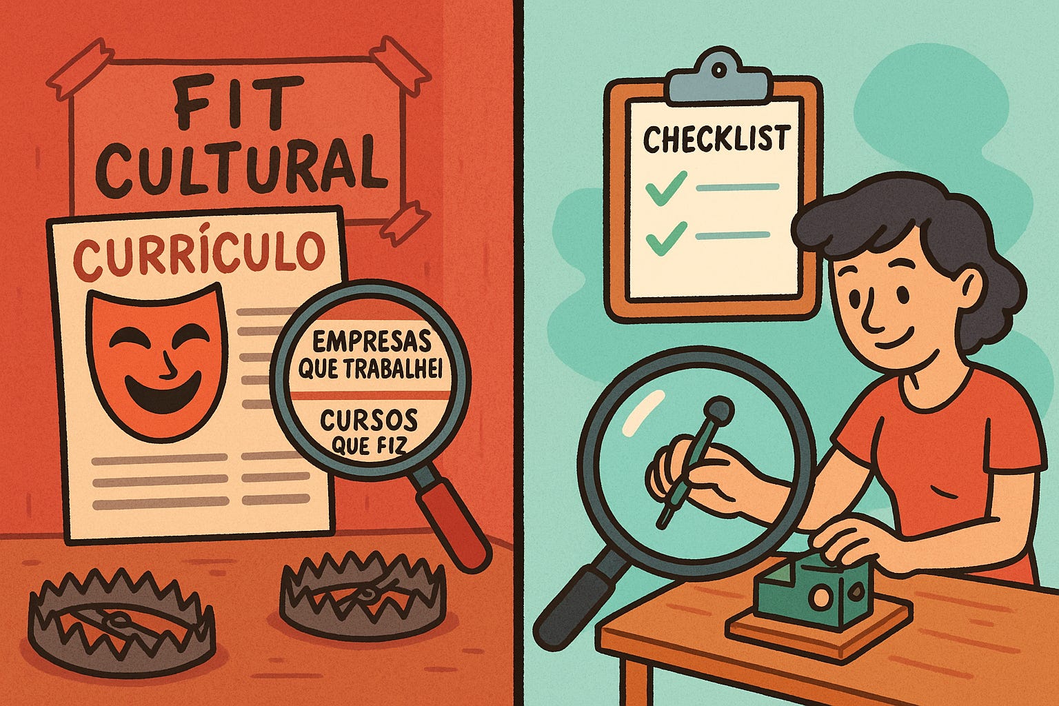 antes de detalhar as etapas, precisamos enfrentar o "cavalo de troia" da maioria dos processos seletivos: a busca pelo "fit cultural" ou "alinhamento de valores". a intenção por trás dessa busca parece nobre: queremos criar um ambiente de trabalho harmonioso. o risco, no entanto, é que "fit cultural" se torne um eufemismo para "pessoas parecidas comigo", um mecanismo que cria bolhas de pensamento e otimiza para o conforto, em vez da competência.
